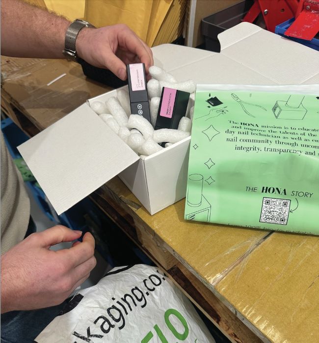 “Producing and packaging more of our products in-house in Wales allows us to reduce transport emissions and maintain quality control,” says Home Of Nail Art (HONA) co-founder, Michael Henson. “Meanwhile, our recyclable packaging and water-soluble packing peanuts help minimise waste. At HONA, we want to improve as we grow.” When customers purchase a HONA Gel Polish collection, the brand also offers the option to receive this without an outer sleeve to reduce packaging.
